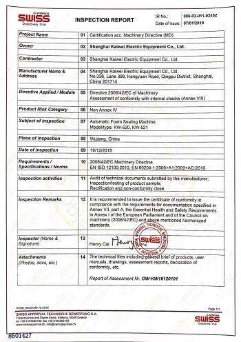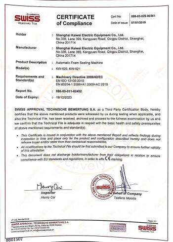 Produk Kaiwei telah lulus sijil ATEX, CCC, CE, PENGHAMBATAN MASUK, sijil ketahanan letupan kilang dan sijil sistem kualiti antarabangsa ISO9001-2000. Kualiti produk telah diterima secara seragam dan mendapat pujiannya daripada pelanggan. Mesin penyegel busa automatik dipasarkan dengan baik di China, dan dieksport ke lebih daripada 20 negara dan rantau, seperti Jerman, Amerika, Itali, Vietnam, Chile, Rusia, India, Timur Tengah, Asia Tenggara, Amerika Latin, dll.